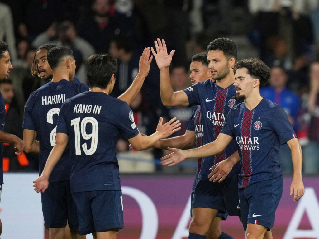Safonov, Hakimi, Marquinhos, Pacho, Nuno Mendes, Zaïre-Emery, Vitinha, João Neves, Doué, Dembélé, Kvaratskhelia